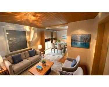 - 5 Zimmer, davon 1 Wohnzimmer mit Kamin, 1 Schlafzimmer, 1 Kinderzimmer, 1 Bad,