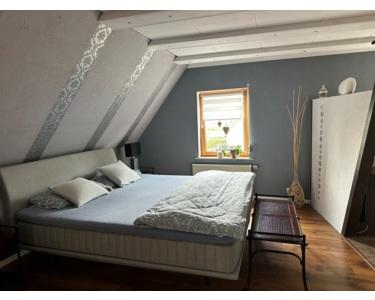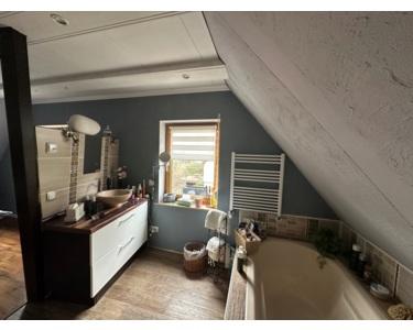 Im offen gestalteten Obergeschoss finden sich das Ankleidezimmer, sowie das Schlafzimmer mit Zugang zum geschmackvoll eingerichteten Wannenbad mit Regendusche und Fenster. Eine Aufteilung des Schlafzimmers in zwei kleine Zimmer ist durchaus nachträglich möglich.