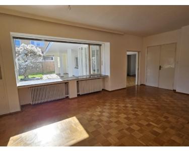 Ausstattung: Winkelbungalow im 60er-Jahre-Charme mit besonderer Architektur, Wohn- und Essbereich mit großen Fensterfronten, hochwertige Einbauküche, 2 Tageslicht-Bäder, Tageslicht-Gäste-WC, große, überdachte Terrassen, Offener Kamin, Garten mit Wasserbecken, altem Baumbestand u. zusätzl. Kellerzugang, Garage u. Stellplatz