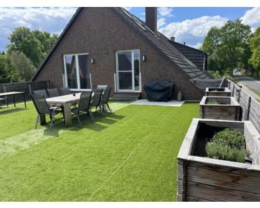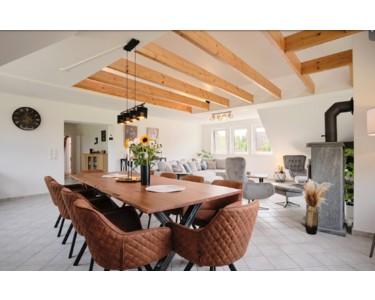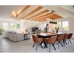 Wir können bis zu 12 Personen unterbringen. Wobei wir 5 Zimmer mit Doppelbetten bieten und 2 Personen auf dem riesigen Schlafsofa nächtigen können. Es gibt im gesamten Umkreis max fünf Wohnungen die solch große Gruppen beherbergen können. Daher sind wir immer gut gebucht.