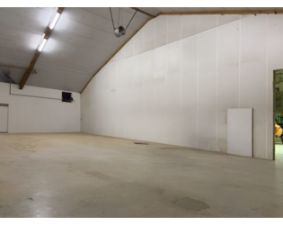 Das Anwesen besteht aus zwei freitragenden Hallen mit einem großen und geschotterten Vorhof. Es kann auch einzeln angemietet werden. In den Hallen mit Betonböden sind mehrere 380V-Anschlüsse vorhanden.