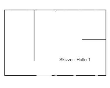 Die freitragende Halle 1 wurde in Betonbauweise errichtet und ist isoliert. Sie ist mit zwei Eingangstüren und zwei elektrisch betriebenen Sektionaltoren mit einer Breite von ca. 5,40 m und einer Höhe von ca. 4,80 m ausgestattet. Die Traufhöhe beträgt ca. 5 m, die Firsthöhe ca. 9 m. Eine Deckengrundbeleuchtung ist vorhanden.