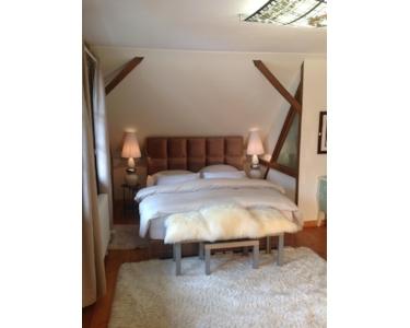 * großzügiges Balkonzimmer mit Bad en Suite, Kleiderschranknische und historischem Kachelofen,