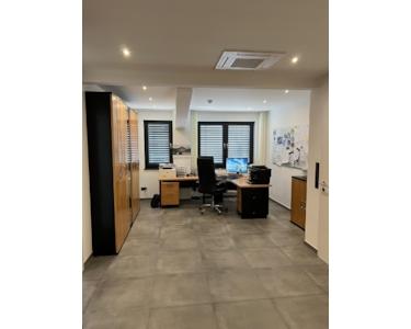 Der zweigeschossige Bürotrakt erbaut 2020 hat ca. 200 QM Grundfläche und ist hochwertig ausgestattet (z.B. dreifach-verglaste Fenster). Der Zugang zum Bürotrakt kann vom Parkplatz oder von der Halle erfolgen.