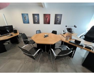 Das Gebäude hat eine sehr hochwertige Ausstattung. Im Bürotrakt gibt es 3-fach verglaste Fenster, einen hochwertigen gefliesten Boden, weisse Türen, GIRA Schaltersysteme, hochwertige Jalousien, Klimaanlage, LED-Beleuchtung (teilweise mit Dimmer) sowie eine leistungsfähige Gas-Heizung mit niedrigem Verbrauch.