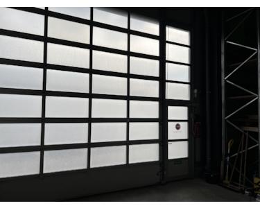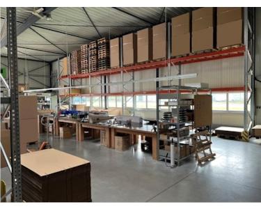 Die Halle ist freitragend, hat einen sehr hochwertigen komplett glatten Boden und 2 Hallentore. Dieser Bereich ist sowohl für eine Fertigung wie für ein sauberes Lager geeignet.