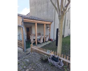 Überdachte Terrasse mit Garten