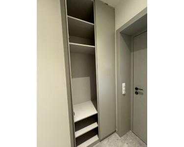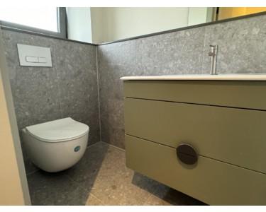 Die maßgefertigten Einbaumöbel, wie die stilvolle Garderobe und die exklusiven Badmöbel, schaffen nicht nur zusätzlichen Stauraum, sondern setzen auch ästhetische Akzente.