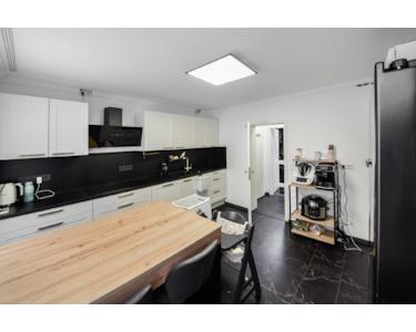 Küche und zwei Schlafräume ergänzen das attraktive Raumangebot. Die neuwertige Einbauküche mit eleganter Lackfront kann optional übernommen werden.