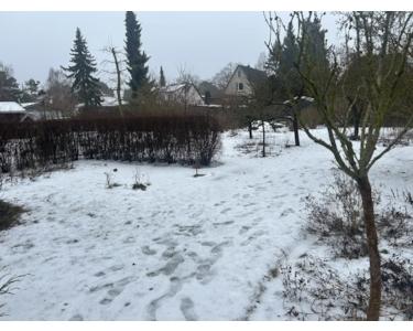 Das ideal gechnittene Grundstück ( ca. 20 m x ca. 41 m ), ist im Moment mit einer teilunterkellerten Gartenlaube bebaut.