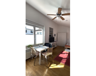 Modernes, vollmöbliertes Apartment, Wohnfläche ca. 35qm, separater Zugang, 1. Obergeschoss, bestehend aus Flur mit Einbauschrank, Tageslichtwannenbad mit Waschtrockner, Wohn- Schlafraum mit Pantry-Küche.