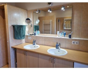 - großes Tageslichtbad mit Dusche, zwei Waschbecken, WC und Einbauschränken