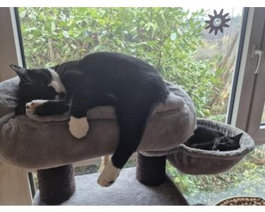die andere Hälfte wird von ihr und ihren beiden Katzen selbst genutzt.