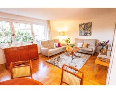 Direkt aus der offenen modernen Wohnküche treten Sie auf die großzügige sonnige Balkon-Terrasse mit Südost-Ausrichtung und genießen den Weitblick in den schön bepflanzten Garten und auf das angrenzende Feld. Eine große elektrische Markise bietet hier ausreichend Sonnenschutz an heißen Sommertagen.