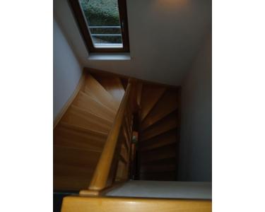 Endreihenhaus mit Schrägdach am Waldrand mit angenehmer Fußbodenheizung in allen Räumen, alle Wohnräume sind hell,helle Wohnküche, mit großer Tür zur Terrasse, Flur, Wohnüche im EG, dann eine Treppe hoch zum Bad, WC neu, Schlafzimmer, dann eine Treppe hoch zum Wohnzimmer, sehr große Fensterfront, sehr hell