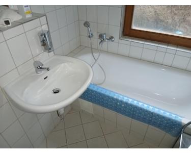 Wohnküche und Bad, Fliesen, Wohnzimmer und Schlafzimmer Teppichboden