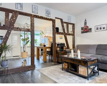 Dieses außergewöhnliche Ensemble bietet Ihnen zwei Häuser für Wohnen, Hobby, Werkstatt und einen traumhaften Garten. Das Vorderhaus wurde 1870 in Fachwerkbauweise errichtet und in den letzten Jahren liebevoll modernisiert. Auf drei Wohnebenen stehen hier familientaugliche 162 m² zur Verfügung.