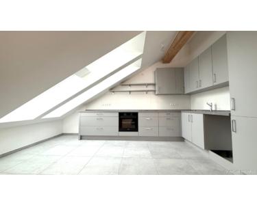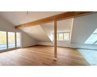 Somit handelt es sich bei der zu vermietenden Dachgeschosswohnung um Erstbezug nach hochwertigem Ausbau. Bereits beim Betreten der Wohnung empfängt Sie durch die enorme Deckenhöhe bis zum First und die großzügige Grundrissgestaltung ein sehr angenehmes und offenes Raumgefühl.