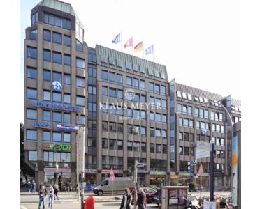 Das markante Eckgebäude erstreckt sich über 3 Straßen in direkter Umgebung zum Hamburger Hauptbahnhof, den Fußgängerzonen Spitalerstraße und Mönckebergstraße sowie die Hamburger Binnenalster.