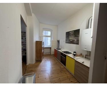 Die Fassade des Wohnhauses ist gen Süden ausgerichtet. Die Immobilie liegt im 2 O.G. im Vorderhaus. Die Wohnung besteht aus einem geräumigen Schlafzimmer, mit Balkon und einem Wohnzimmer das viel Platz bietet. Dies ist mit einem Holzkamin ausgestattet. Die Küche verfügt über einen kleinen Stauraum. Das Badezimmer ist mit einer modernen Dusche ausgestattet. Die Wohnung wird durch eine Etagenheizung mit Wärme und Warmwasser versorgt. Ein mind. 6 m2 großen Keller ist auch vorhanden.