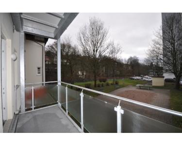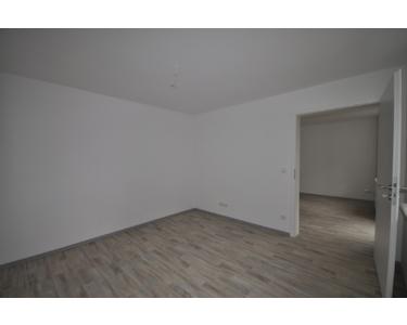 Mehrfamilienhaus, Hochparterre, Flur mit kleinem Abstellbereich, Bad mit Dusche, WC, Handwaschbecken und Fenster, Küche mit Fenster, Wohnzimmer mit Zugang zum Balkon, Schlafzimmer, Kinderzimmer