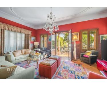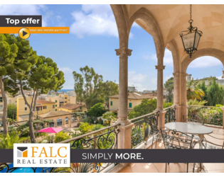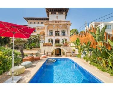 Dieser wunderschöne Stadtpalast aus dem Jahr 1940, der sich durch seine luxuriöse Atmosphäre und den spektakulären Blick auf den Hafen von Palma und das Schloss Bellver auszeichnet, befindet sich im beliebten Stadtteil Son Armadams von Palma de Mallorca. Das Anwesen wurde auf einem ca. 2100 m2 grossen Grundstück erbaut, verfügt über eine bebaute Fläche von ca. 1000 m2, verteilt auf 5 Etagen, mehrere Terrassen und eine Dachterrasse mit einem fantastischen Blick und ein schön angelegter Garten mit Pool. Dieser elegante Stadtpalast, der zwischenzeitlich mit viel Liebe zum Detail renoviert wurde, besteht aus einem hellen Eingangsbereich, 2 Wohnzimmer, 2 Esszimmer, eine moderne und voll ausgestattete Küche, eine Speisekammer, 8 Schlafzimmer, 6 Badezimmern (davon 2 en suite), einen Ankleiderraum, eine Gästetoilette, einen Hauswirtschaftsraum und einen Abstellraum. Der herrschaftliche Aussenbereich umfasst den Garten mit Pool, ein Gästehaus, 6 Stellplätze und eine private Garage für 3 Autos. Zusätzlich gibt ein unabhängiges Gebäude, dass in eine ca. 50 m2 grosse Wohnung umgewandelt werden kann. Zu den Ausstattungsmerkmalen zählen unter anderem: Originalböden, Gewölbedecken, Öl-Zentralheizung, doppelt verglaste Fenster mit Holzfensterläden, Kamin, Klimaanlage und ein automatisches Bewässerungssystem.