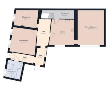 Über eine Treppe im Innenhof erreichst Du die zweite Wohneinheit, die ab 2004 zu Wohnraum um- und ausgebaut wurde. Diese modern geschnittene Einheit ist aufgeteilt in den Flur mit Zugang zum Badezimmer mit bodengleicher Dusche, zum Arbeitszimmer, zur Küche, von dort weiter zum großen Wohn-/Esszimmer mit einer Empore. Über einen zweiten Flur erreichst Du ein weiteres Zimmer und das große Schlafzimmer. Ein Zugang zum Spitzboden und ein außerhalb der Wohnung liegender Abstell- und Hauswirtschaftsraum vervollständigen die obere Einheit.