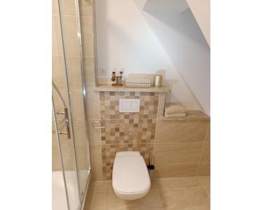 In dem 1960 gebauten Mehrfamilienhaus wurde diese Wohnung 2023/24 völlig neu ins Dachgeschoß gebaut, und in diesem Zug wurde das ganze Haus mit neuen Fenstern und Fassadendämmung energetisch auf den neuesten Stand gebracht.