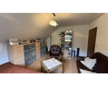 Im Obergeschoss befindet sich eine abgeschlossene 3-Zimmer-Wohnung mit großzügigem Bad, Küche sowie einer nach Süden ausgerichteten, teilweise überdachten Dachterrasse. Zusätzlich steht außerhalb der Wohnung, direkt vom Treppenhaus aus zugänglich, ein weiteres Zimmer zur Verfügung, das flexibel der oberen oder unteren Wohneinheit zugeordnet werden kann.