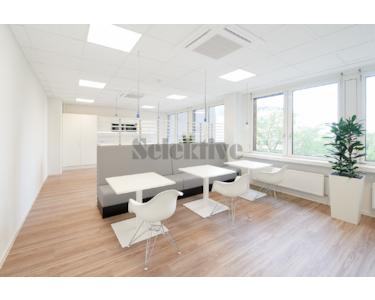 Für eine erholsame Mittagspause sorgt eine Kantine im Haus mit Außenterrasse.