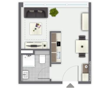- Helles, lichtdurchflutetes Apartment mit moderner Singleküche