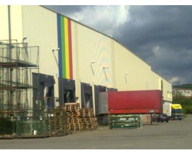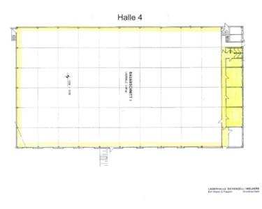 Halle IV - 2160 qm verfügt über 4 Rampentore und 4 ebenerdige LKW-Einfahrtmöglichkeiten. Innerhalb der Halle befindet sich ein Bürocontainer mit ca. 15 qm.