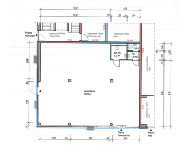 Die Geschäftsfläche mit insges.ca. 167 m² besteht z.Zt. aus einem großen Raum - ca. 160 m² mit nur 2 schmalen Stützen und ließe sich daher auch sehr gut aufteilen und 2 WC. Da sich diese Einheit noch im Rohbauzustand befindet, können Ausstattungswünsche noch Berücksichtigung finden.