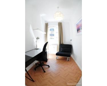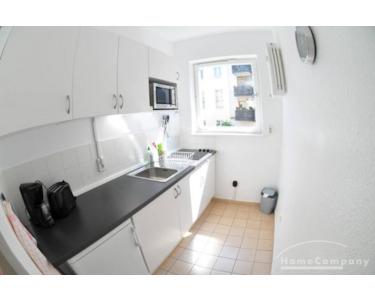 Helle 3-Zimmer-Wohnung mit West-Balkon für idealerweise 1-2 Personen 1850,-- Miete inkl. NK pro Monat (bei 3 Personen/Max. Belegung: 1900,-- Miete inkl. NK pro Monat). Das zum ruhigen Innenhof Schlafzimmer verfügt über ein Doppelbett (ca. 140cm), das kleine Zimmer ist mit einem einfachem Bettsessel (ca. 80cm) und einem Arbeitsplatz, das Wohnzimmer mit Esstisch f.3 Pers., bequemem Sofa sowie Fernseh-/Lesesessel ausgestattet. Umfangreich ausgestattete Einbauküche mit Kühlschrank, Ceran-Kochfeld und Mikrowelle, Kaffeemaschine, Toaster, Geschirr und Besteck. Bad mit Badewanne. Flur mit Einbauschrank. Klingel mit Türöffner. Sat-TV und Radio.