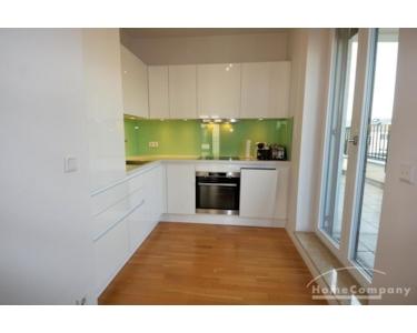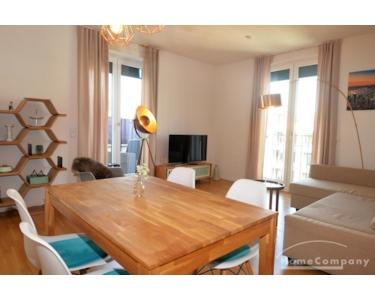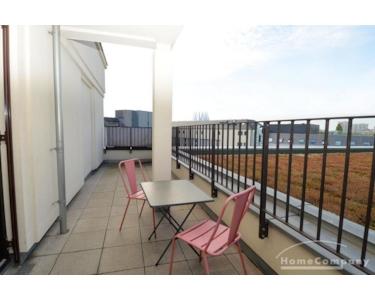 Diese neue, modern möblierte und neuwertige Wohnung hat eine wunderschöne Dachterrasse. Das Schlafzimmer ist mit einem großem Schrank und einem hochwertigen Boxspringbett ausgestattet. Das Tageslichtbad hat eine Dusche und einen eigenen Balkon. Im hellen Wohnzimmer befindet sich eine hochwertige Sofalandschaft, und der Essbereich bietet einen Esstisch. Die Wohnung hat zudem einen Flur mit Garderobe, einen Hauswirtschaftsraum mit Waschmaschine und Trockner, helles Parkett, Fußbodenheizung, Internet.