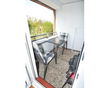 Die Wohnung besteht aus einem hellen Wohnzimmer, einem kleinen Schlafzimmer mit Doppelbett, einem sauberen Bad mit Dusche, einer kleinen separaten Küche und einem sehr hübschen Balkon. Während Wohn- und Schlafzimmer mit Teppichboden ausgestattet sind, befinden sich in Küche und Flur Fliesen. Die Wohnung liegt im 3. OG, ein Aufzug ist vorhanden.