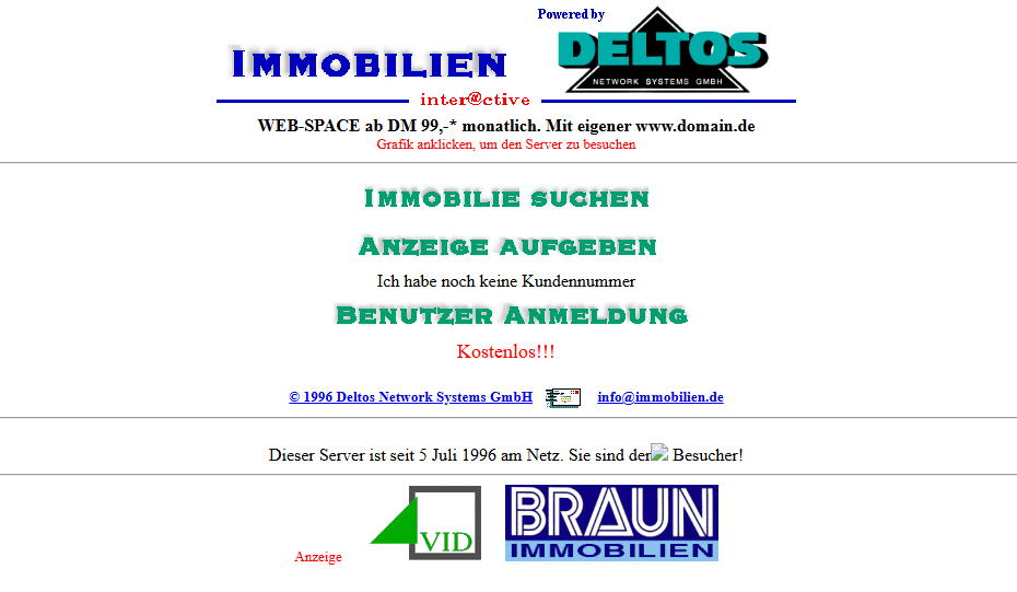 1996 sicherten sie sich mit immobilien.de die 6.000ste registrierte deutsche Internetdomain und gründeten damit das erste deutsche Immobilienportal, das am 5. Juli 1996 in Betrieb ging. Schnell etablierte sich das Portal als verlässliche Anlaufstelle für Käufer und Verkäufer von Immobilien und wächst seitdem kontinuierlich.