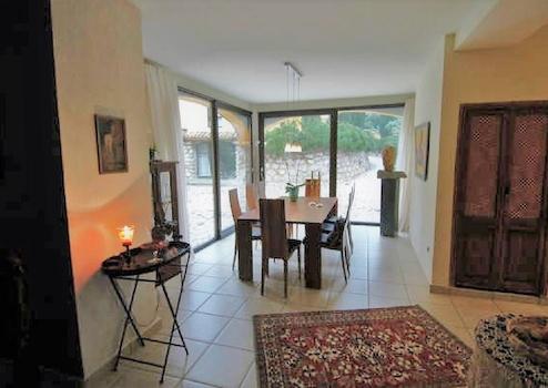 Ein Wort das dem nahe käme wäre sicher charmant, denn dem rustikalen, burgähnlichen Äußeren steht im Inneren eine moderne Villa mit Stil, Großzügigkeit und Eleganz gegenüber.