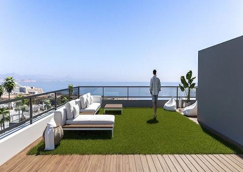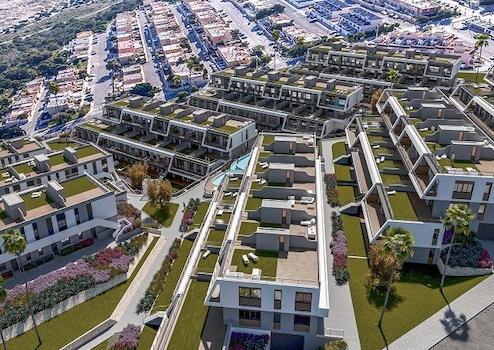 Neubauapartmentwohnanlage namens Iconic mit ingesamt 170 Appartments in Gran Alacant, mit Blick auf das Mittelmeer und direktem Zugang zum Strand El Carabassi, ausgezeichnet mit der Blauen Flagge.