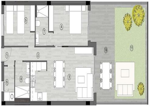 Diese Wohnung , als Beispiel, bietet Ihnen 2 Schlafzimmer sowie 2 Bäder.