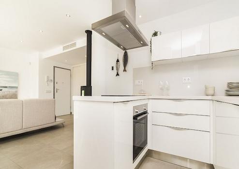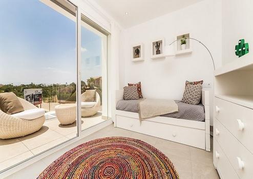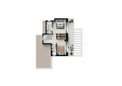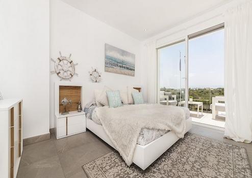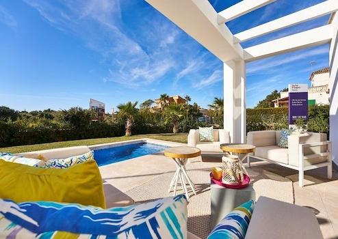 Die Einfamilienhäuser der Wohnsiedlung Las Villas de Dalt de Sa Rápita im modernen, minimalistischen Design, mit großzügigen, lichtdurchfluteten Räumlichkeiten bieten optimale Flächennutzung und maximalen Komfort.