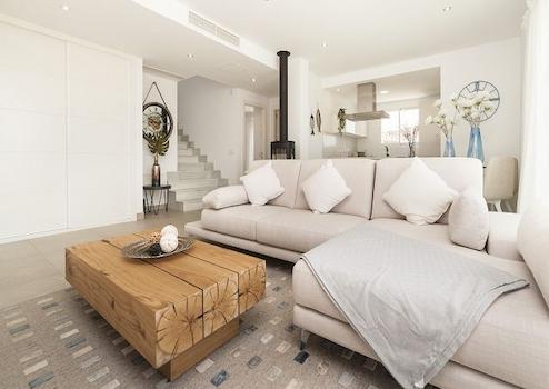 Die Häuser verfügen über 3 Doppelschlafzimmer und 3 Bäder, voll möblierte Küche, Waschküche, Wohn-Esszimmer mit Vorinstallation für einen Kamin, weitläufige Terrassen und einen Garten. Zu jedem Grundstück gehören außerdem ein privater Parkplatz und ein Abstellraum.