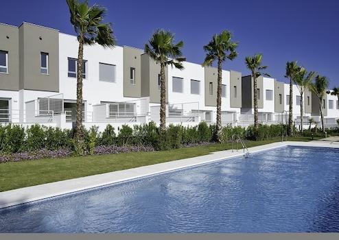 Der neue Wohnkomplex Green Golf zeichnet sich durch einen herrlichen Panoramablick auf den Golfplatz und das Meer aus. Die Reihenhäuser bieten aufgrund der Süd-/Südwestausrichtung viel Tageslicht und