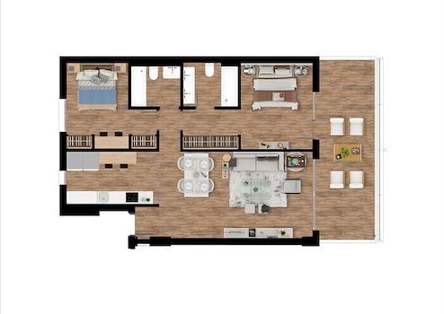 Im Gebäude Pier 2 befinden sich Apartments mit 2 und 3 Schlafzimmern, die zu großen Wohnungen mit 4 oder 5 Schlafzimmer und großzügigen Wohnbereichen zusammengefügt werden können.