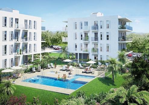 Die im mediterranen Stil erbaute und ganz in weiß gehaltene reine Apartmentwohnanlage wird aus insgesamt 16 wunderschönen Apartments mit zwei Schlafzimmern und mediterraner Architektur bestehen.Die Wohngebäude sind von weitläufigen Gartenanlagen mit inseltypischer Bepflanzung und zwei großen Gemeinschaftspoolanlagen umgeben.