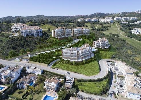 Der neue Wohnkomplex Grand View mit atemberaubendem Rundblick auf die Golfplätze und die Bergkette Sierra de Mijas bietet: