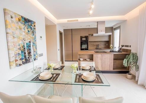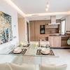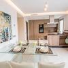 - Separate Küche in den 2 Schlafzimmer- und Duplex-Penthäusern in Phase 1, getrennt durch einen massive Glaswand und eine verglaste Schiebetür.
