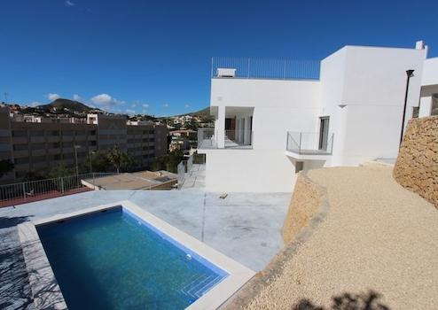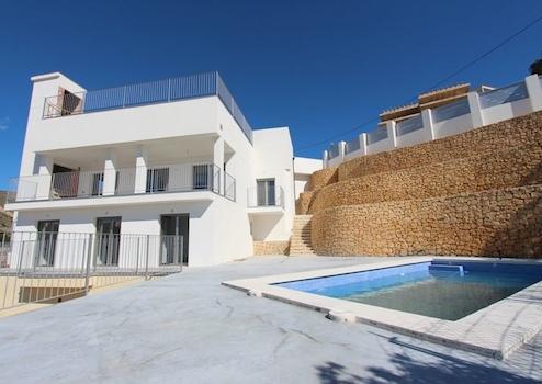 Großzügige neuwertige Villa mit fantastischem Meerblick, 4 Schlafzimmern, 4 Bädern, Pool, Dachterrasse, privatem Aufzug und Klimaanlage.