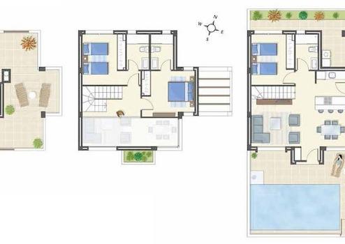 Diese großzügigen und ansprechenden Villen verfügen über eine konstruierte Fläche von ca. 159 m² (inklusive Terrassen) mit