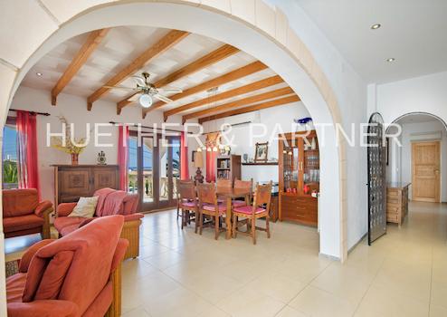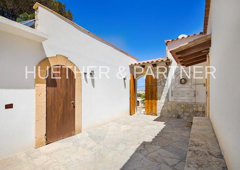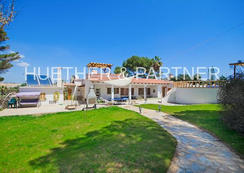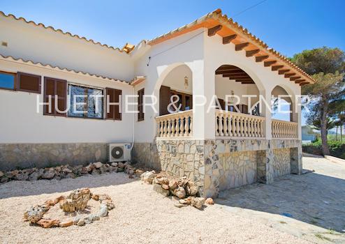 Die STRANDnahe MEERblick-POOL-Villa beinhaltet 150 m2 Wohnfläche mit 3 Eingängen, voll ausgestattete Küche, 4 Schlafzimmer, 2 Bäder (eines en Suite), grosses Wohn-Esszimmer mit Kamin und mit Zugang zur vorderseitigen Terrasse, 4 Terrassen insgesamt, Poolbereich, klassischer Garten mit Innenteil im spanischen Stil